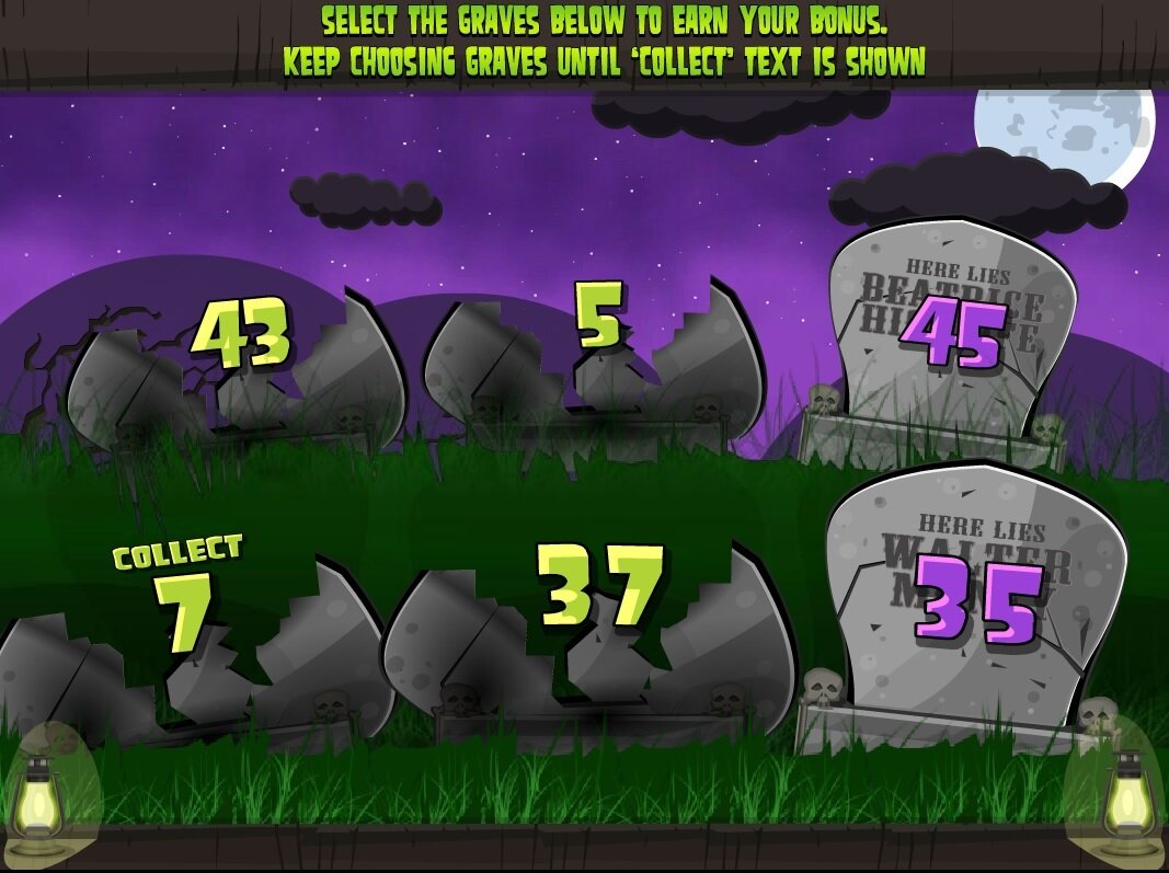 In de Graveyard Second Screen Bonus mag je 6 graven aanklikken, totdat je een ‘Collect’ treft. In de tussentijd levert elk graf je een kleine geldprijs op.